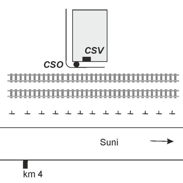 [{"simbolo_contrassegno":"P3","materializzazione":"Alla base del muro verso i binari, presso lo spigolo sinistro."},{"simbolo_contrassegno":"V1","materializzazione":"Sul muro suddetto, fra la finestra e lo spigolo sinistro."}]