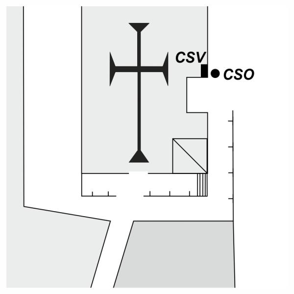 [{"simbolo_contrassegno":"P2","materializzazione":"Alla base della parete sud della sagrestia"},{"simbolo_contrassegno":"V1","materializzazione":"Sulla parete, in corrispondenza del cso."},{"simbolo_contrassegno":"P2","materializzazione":"Alla base della parete sud della sagrestia"}]