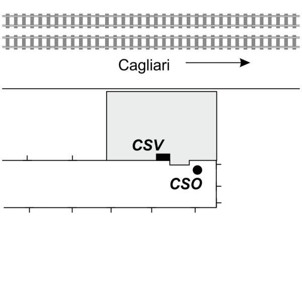 | Contrassegni | [{"simbolo_contrassegno":"P3","materializzazione":"Alla base della facciata (verso la strada statale) della stazione, a destra della porta d'ingresso."},{"simbolo_contrassegno":"V1","materializzazione":"Sulla facciata a sinistra di detta porta."}] |