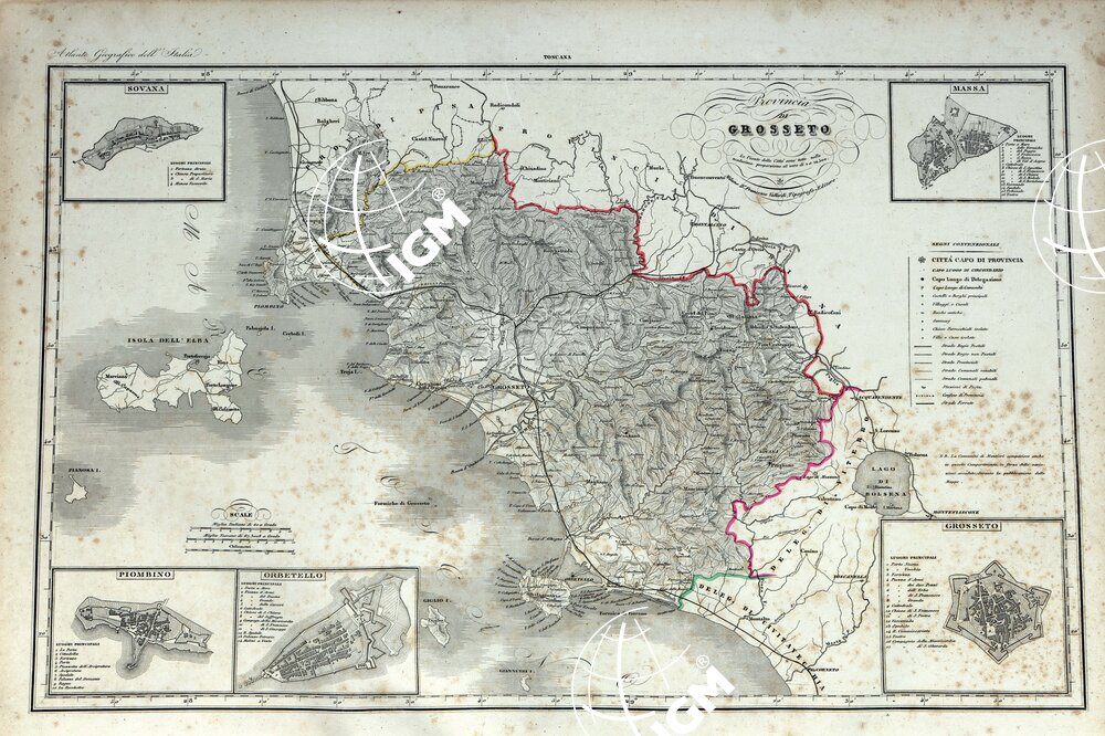 ATLANTE ORO-IDROGRAFICO COROGRAFICO E STORICO DELL’ ITALIA ANNI dal 1138 a dopo il 1870 – PROVINCIA DI GROSSETO