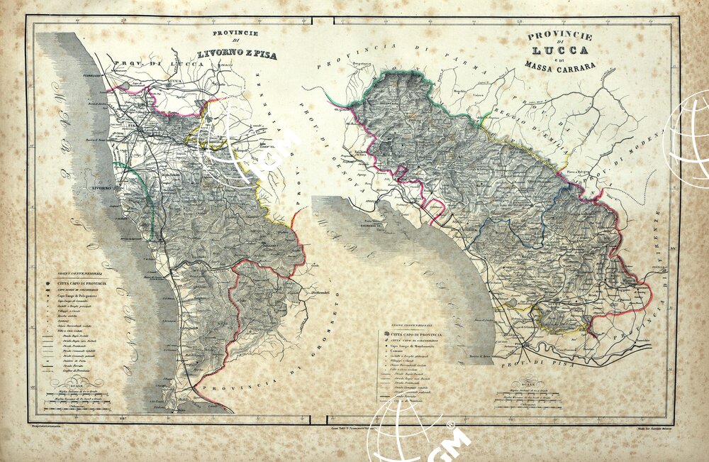 ATLANTE ORO-IDROGRAFICO COROGRAFICO E STORICO DELL’ ITALIA ANNI dal 1138 a dopo il 1870 – PROVINCIE DI LIVORNO E PISA, PROVINCIE DI LUCCA E DI MASSA CARRARA