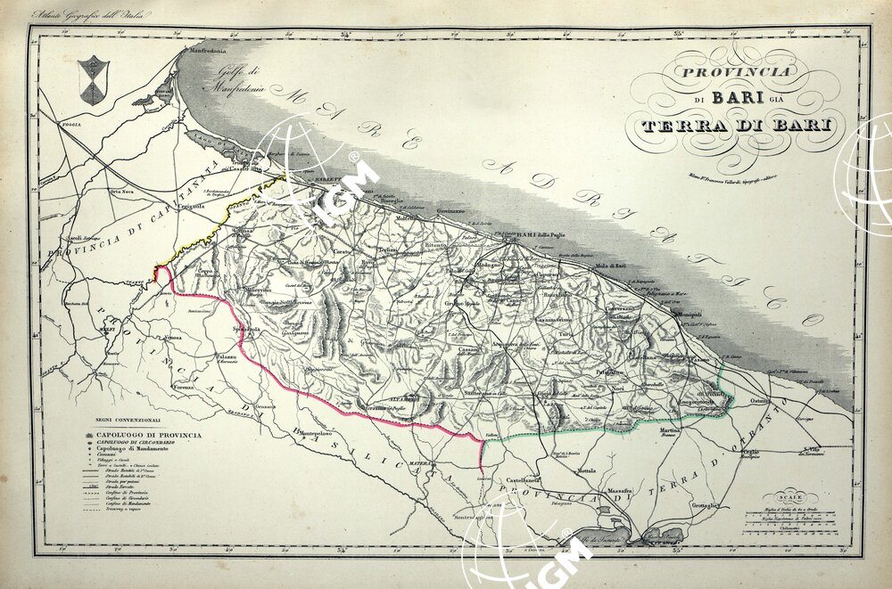 ATLANTE ORO-IDROGRAFICO COROGRAFICO E STORICO DELL’ ITALIA ANNI dal 1138 a dopo il 1870 – PROVINCIA DI BARI