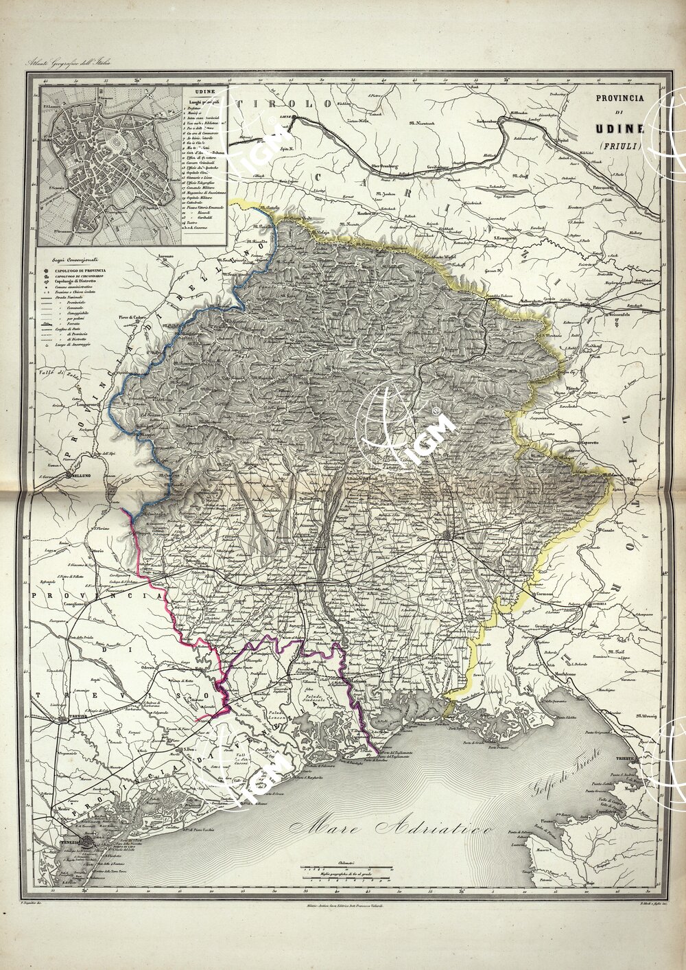 ATLANTE ORO-IDROGRAFICO COROGRAFICO E STORICO DELL’ ITALIA ANNI dal 1138 a dopo il 1870 -PROVINCIA DI UDINE (FRIULI)