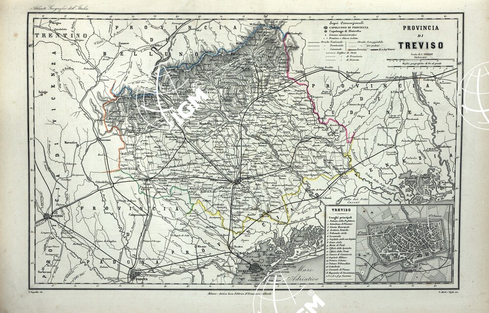 ATLANTE ORO-IDROGRAFICO COROGRAFICO E STORICO DELL’ ITALIA ANNI dal 1138 a dopo il 1870 – PROVINCIA DI TREVISO