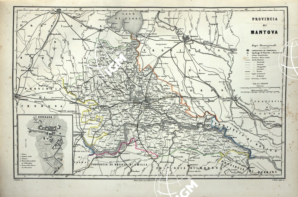 ATLANTE ORO-IDROGRAFICO COROGRAFICO E STORICO DELL’ ITALIA ANNI dal 1138 a dopo il 1870 – PROVINCIA DI MANTOVA
