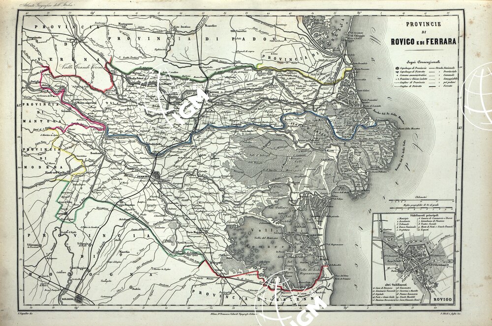 ATLANTE ORO-IDROGRAFICO COROGRAFICO E STORICO DELL’ ITALIA ANNI dal 1138 a dopo il 1870 – PROVINCIE DI ROVIGO E DI FERRARA