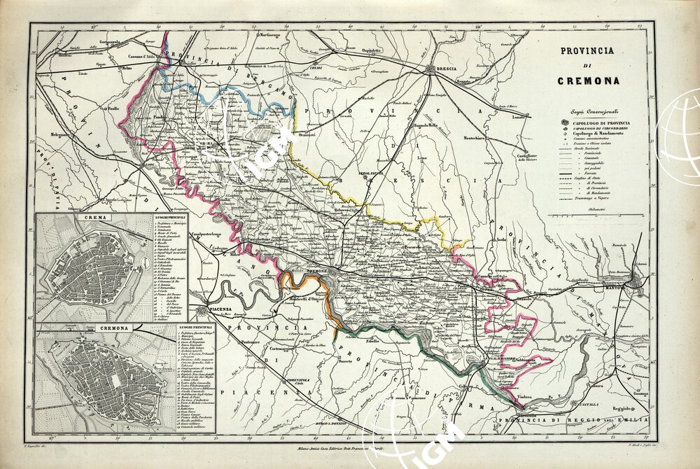 ATLANTE ORO-IDROGRAFICO COROGRAFICO E STORICO DELL’ ITALIA ANNI dal 1138 a dopo il 1870 – PROVINCIA DI CREMONA