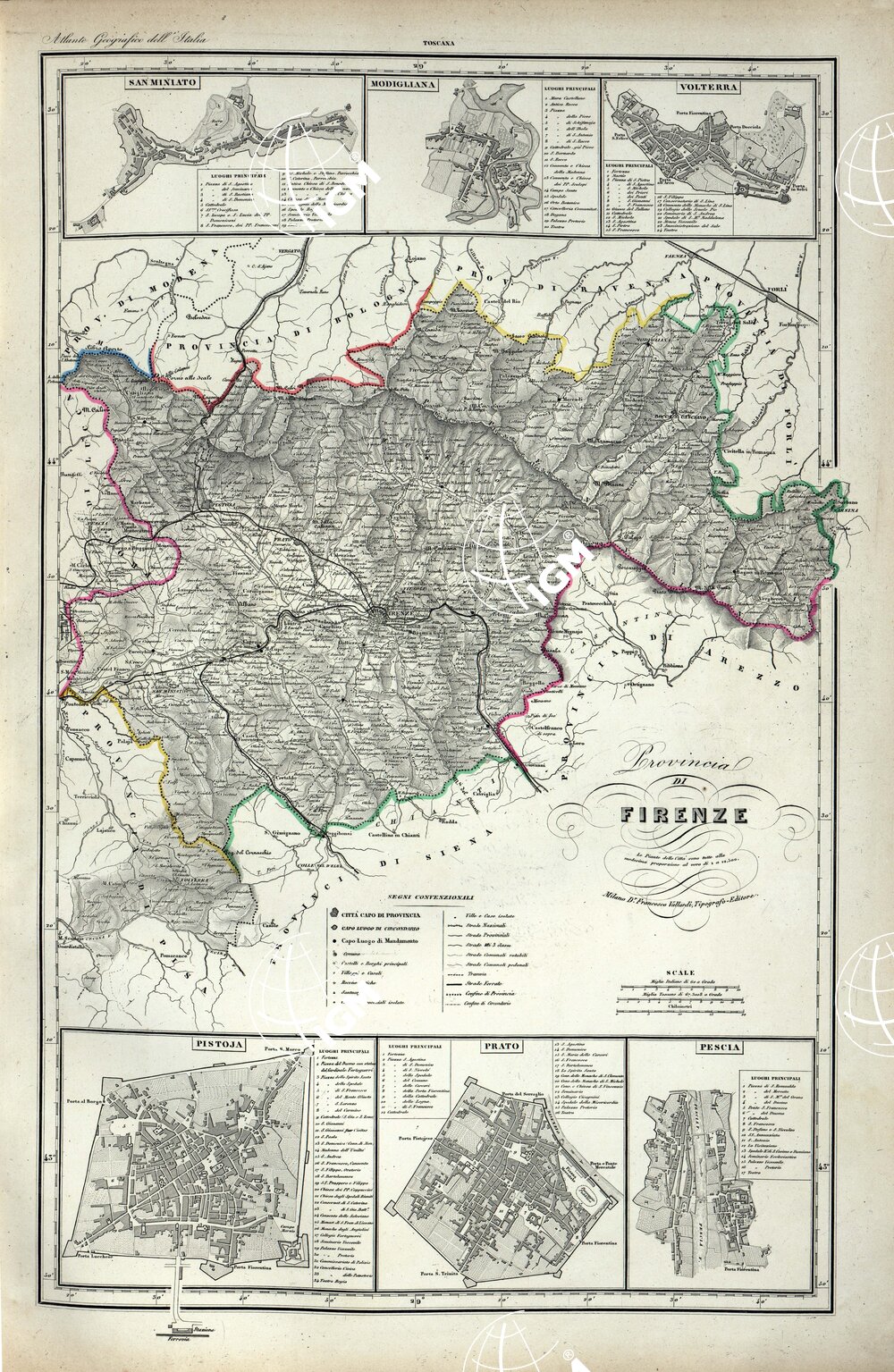 ATLANTE ORO-IDROGRAFICO COROGRAFICO E STORICO DELL’ ITALIA ANNI dal 1138 a dopo il 1870 – PROVINCIA DI FIRENZE
