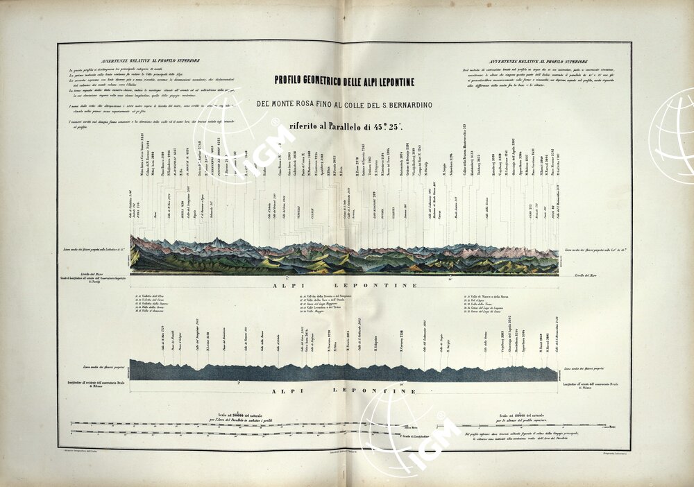 ATLANTE ORO-IDROGRAFICO COROGRAFICO E STORICO DELL’ ITALIA ANNI dal 1138 a dopo il 1870 – PROFILO GEOMETRICO DELLE ALPI LEPONTINE
