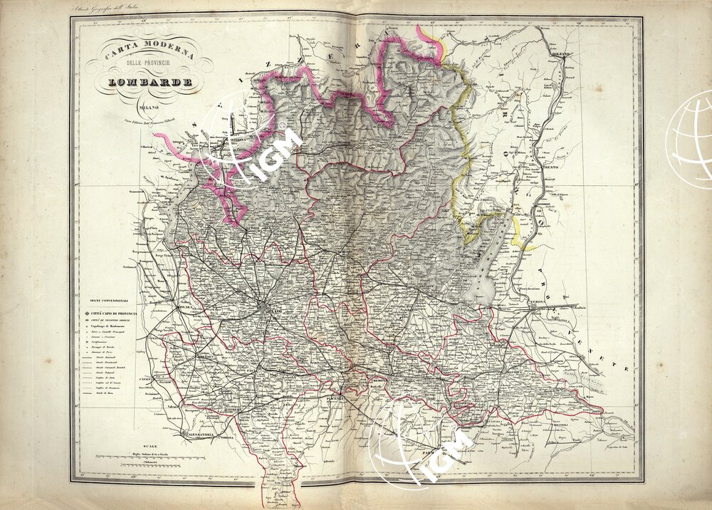 ATLANTE ORO-IDROGRAFICO COROGRAFICO E STORICO DELL’ ITALIA ANNI dal 1138 a dopo il 1870 – CARTA MODERNA DELLE PROVINCIE LOMBARDE
