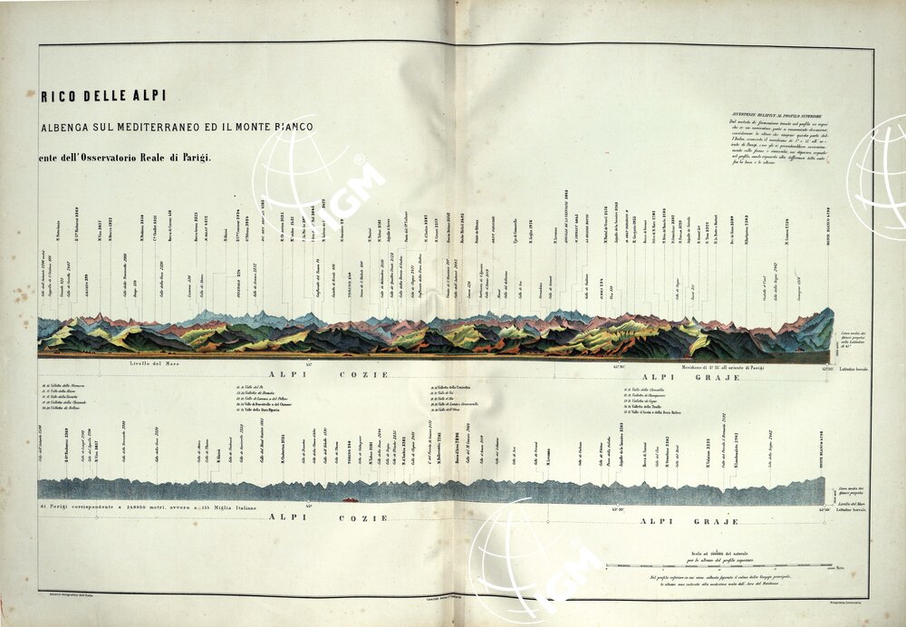 ATLANTE ORO-IDROGRAFICO COROGRAFICO E STORICO DELL’ ITALIA ANNI dal 1138 a dopo il 1870 – PROFILO GEOMETRICO DELLE ALPI TRA IL MONTE SCHIAVO A SETTENTRIONE D’ ALBENGA SUL MEDITERRANEO E IL MONTE BIANCO PARTE 2