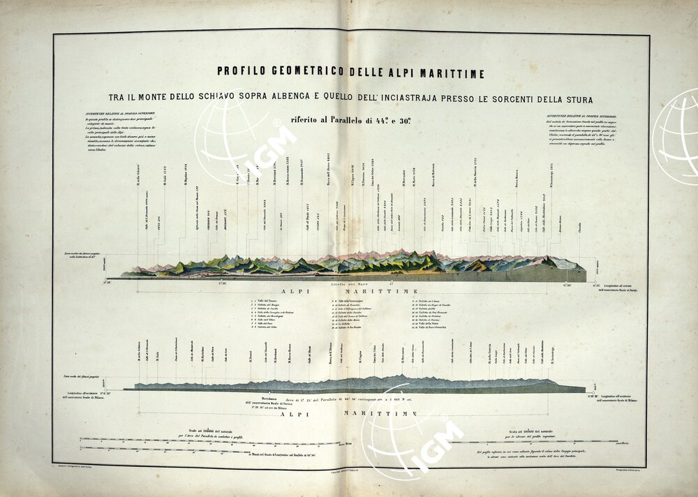 ATLANTE ORO-IDROGRAFICO COROGRAFICO E STORICO DELL’ ITALIA ANNI dal 1138 a dopo il 1870 – PROFILO GEOMETRICO DELLE ALPI MARITTIME