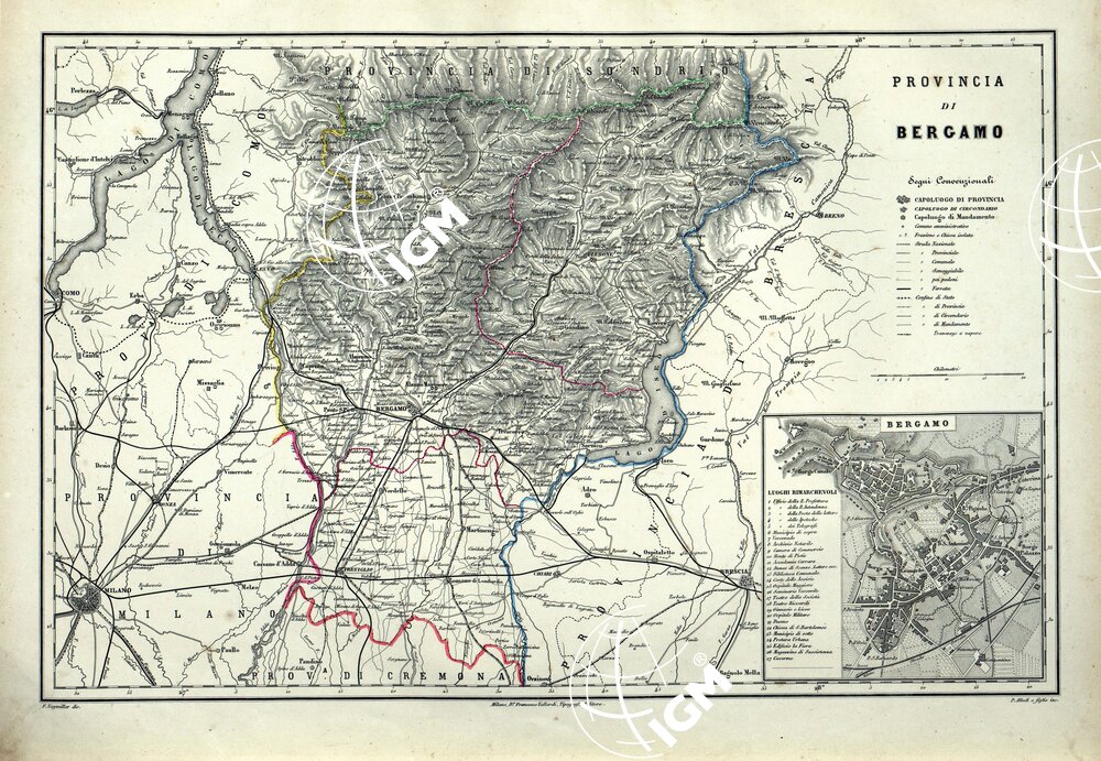 ATLANTE ORO-IDROGRAFICO COROGRAFICO E STORICO DELL’ ITALIA ANNI dal 1138 a dopo il 1870 – PROVINCIA DI BERGAMO