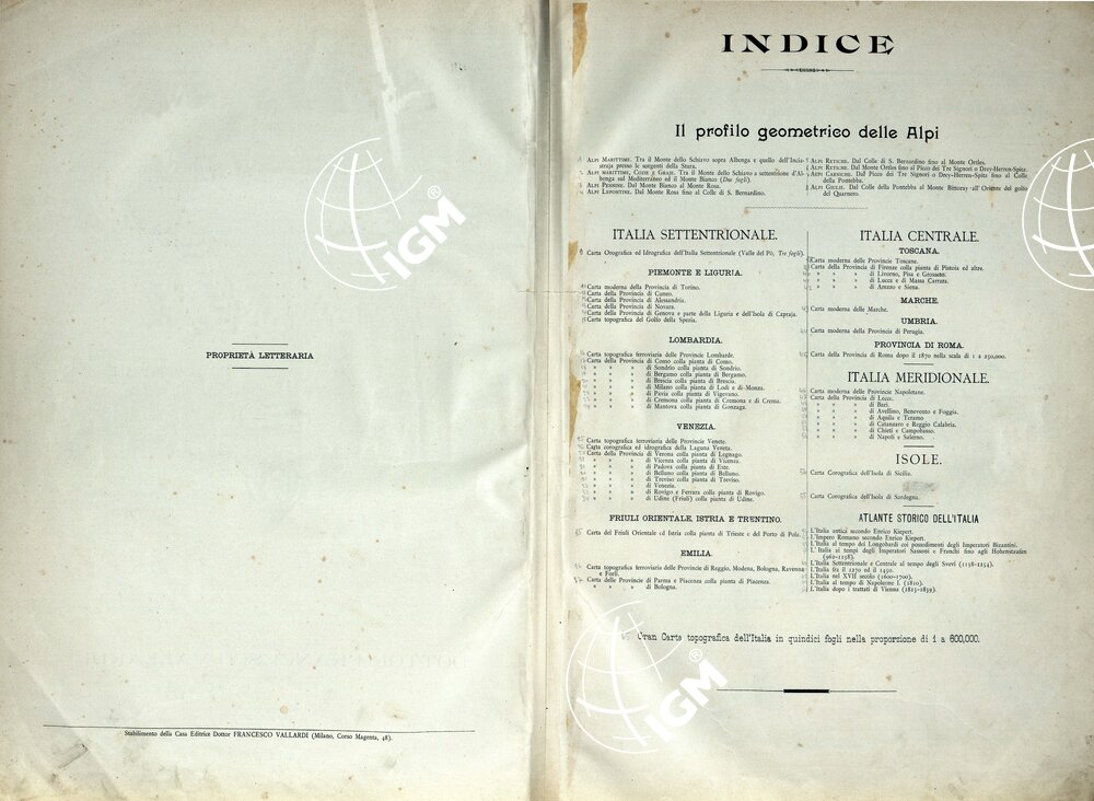 ATLANTE ORO-IDROGRAFICO COROGRAFICO E STORICO DELL’ ITALIA ANNI dal 1138 a dopo il 1870 – INDICE