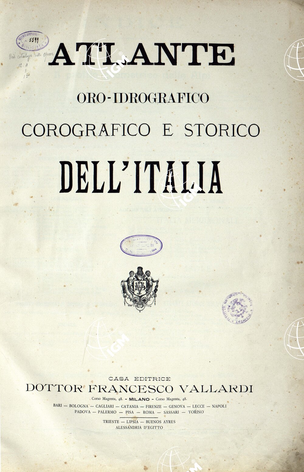 ATLANTE ORO-IDROGRAFICO COROGRAFICO E STORICO DELL’ ITALIA ANNI dal 1138 a dopo il 1870 – TITOLO