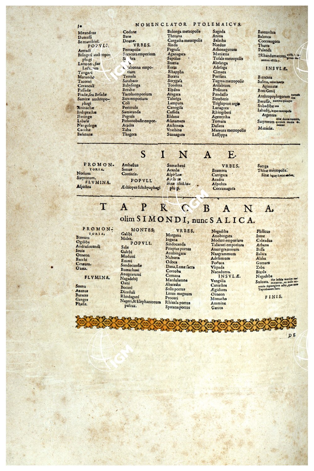 THEATRUM ORBIS TERRARUM (ATLANTE DELL’ ORTELIO) A COLORI – INDIA EXTRA GANGEM,SINAE, TAPROBANA INDICE