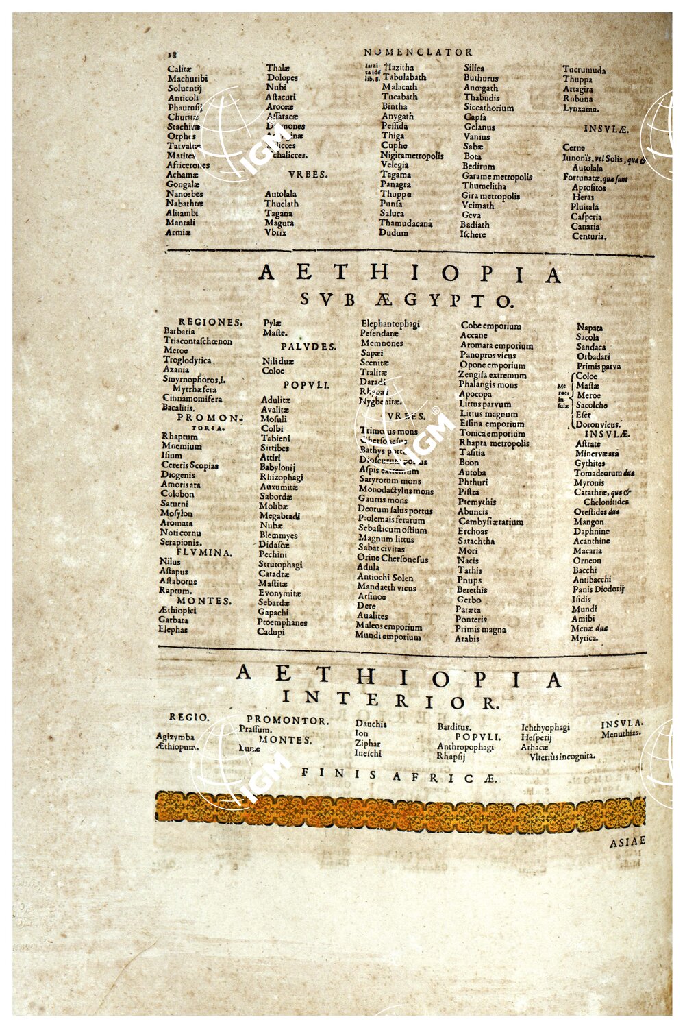 THEATRUM ORBIS TERRARUM (ATLANTE DELL’ ORTELIO) A COLORI – LIBYA INFERIOR,ÆTHIOPIA SUBÆGYPTO, ÆTHIOPIA INTERIOR INDICE