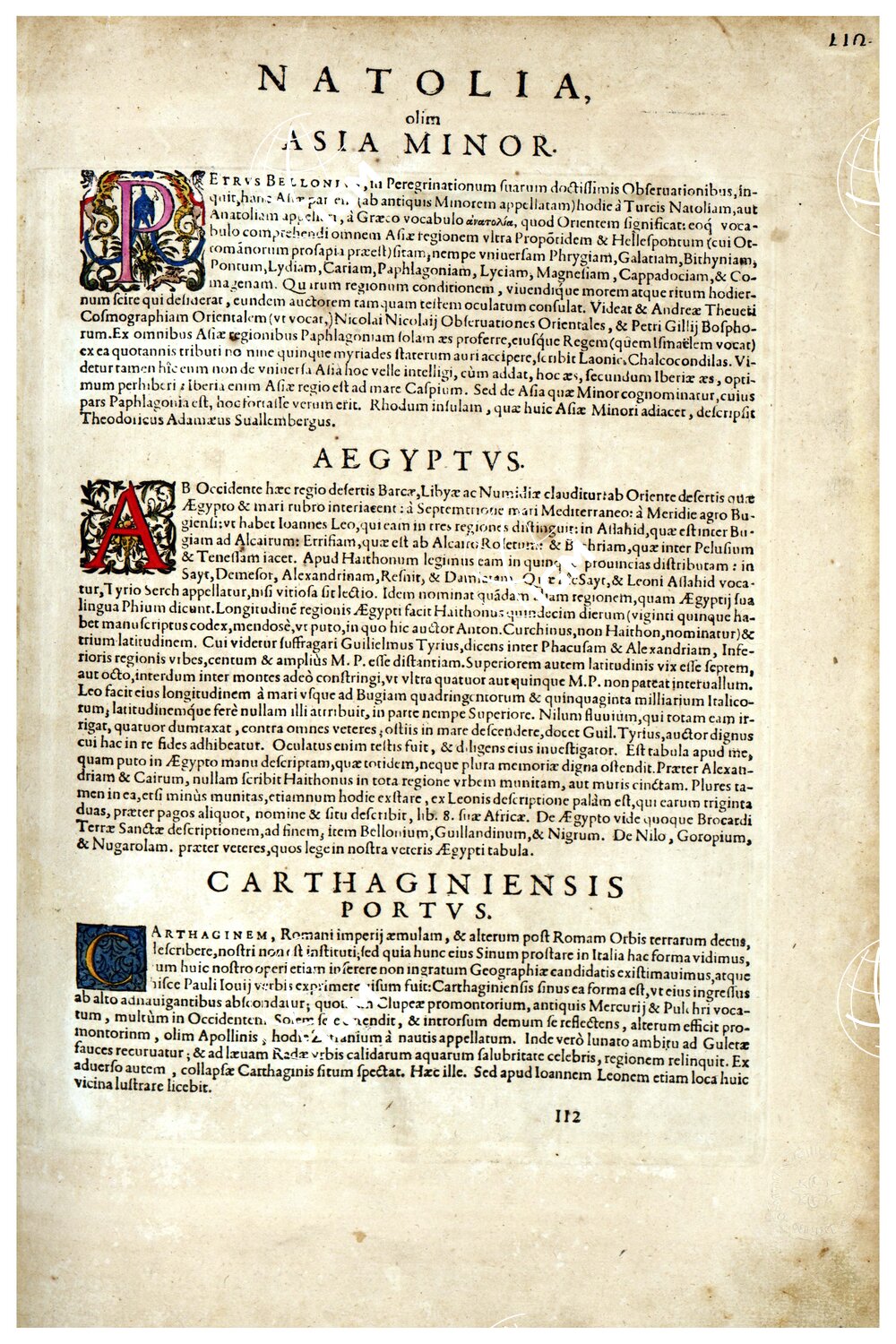 THEATRUM ORBIS TERRARUM (ATLANTE DELL’ ORTELIO) A COLORI – NATOLIA OLIM ASIA MINOR, ÆGYPTUS, CARTHAGINIENSIS PORTUS TESTO