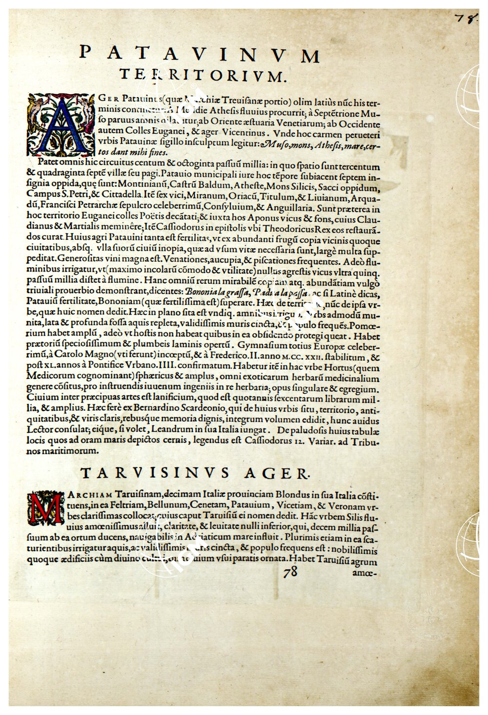 THEATRUM ORBIS TERRARUM (ATLANTE DELL’ ORTELIO) A COLORI – PATAVINUM TERRITORIUM, TARVISINUS AGER TESTO FRONTE