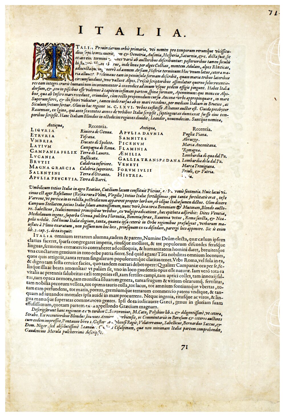 THEATRUM ORBIS TERRARUM (ATLANTE DELL’ ORTELIO) A COLORI – ITALIA TESTO