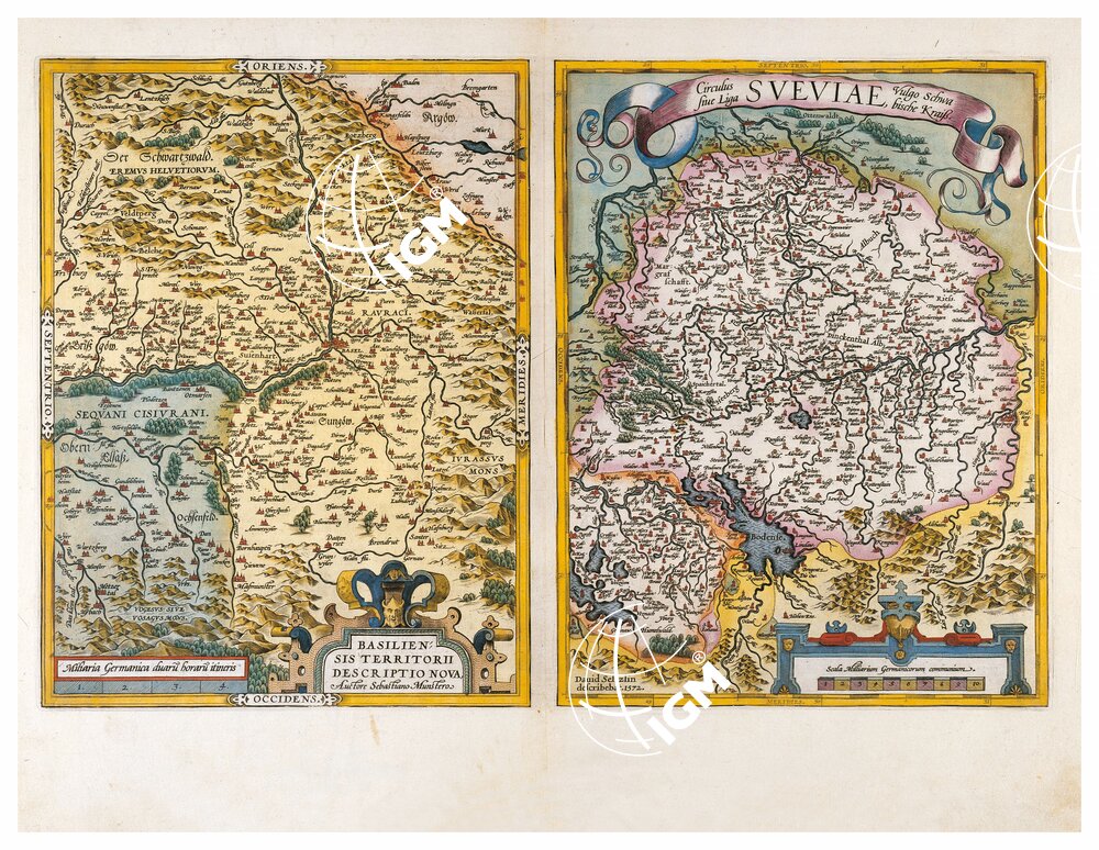 THEATRUM ORBIS TERRARUM (ATLANTE DELL’ ORTELIO) A COLORI – SVEVIÆ CIRCULUS, BASILIENSE TERRITORIUM TAVOLA 68