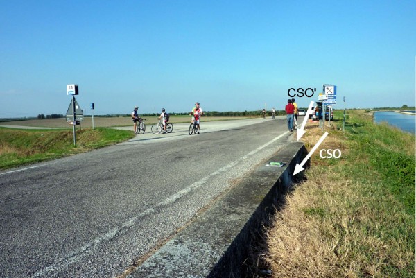 | Contrassegni | [{"simbolo_contrassegno":"B1","materializzazione":"(CSO) – Bullone infisso nel muretto a lato strada (stante n\u00b049 ), a destra in direzione Scardovari , poco prima della fine del muretto e dell'incrocio con la strada per C\u00e0 Mello."},{"simbolo_contrassegno":"B7","materializzazione":"(CSO') – Contrassegno metallico del Catasto, posto sulla sommit\u00e0 ed alla fine del muretto, 10 metri dopo il CSO."}] |