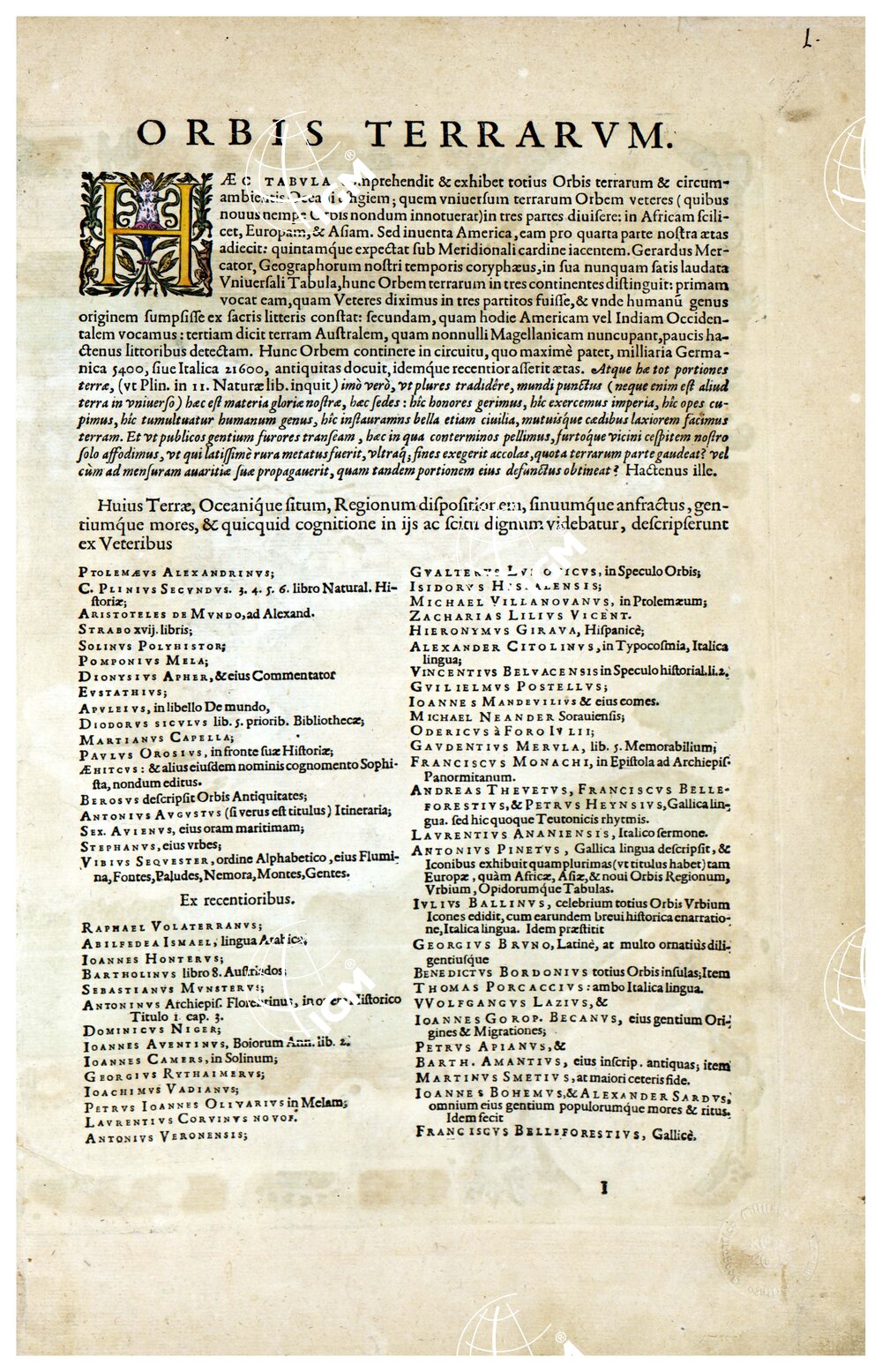THEATRUM ORBIS TERRARUM (ATLANTE DELL’ ORTELIO) A COLORI – TYPUS ORBIS TERRARUM TESTO