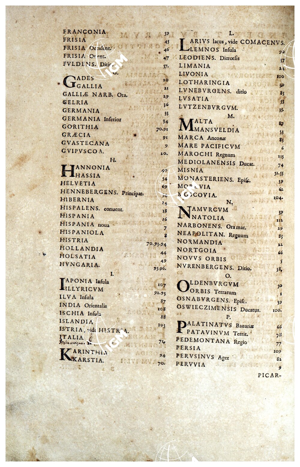 THEATRUM ORBIS TERRARUM (ATLANTE DELL’ ORTELIO) A COLORI – INDEX TABULARUM F – P