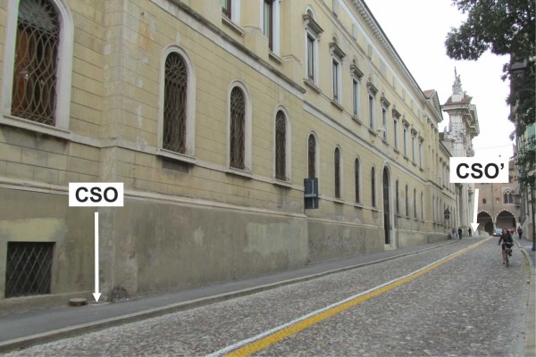 | Contrassegni | [{"simbolo_contrassegno":"P4","materializzazione":"(CSO) – Chiusino di IV categoria posto nell'angolo sinistro dell'avancorpo del Seminario Vescovile alla base della facciata prospicente via Cairoli."},{"simbolo_contrassegno":"B5","materializzazione":"(CSO') – Disco metallico impiombato infisso sulla soglia, a sinistra, della porta destra di ingrasso al Duomo di Mantova che da su piazza Sordello."}] |