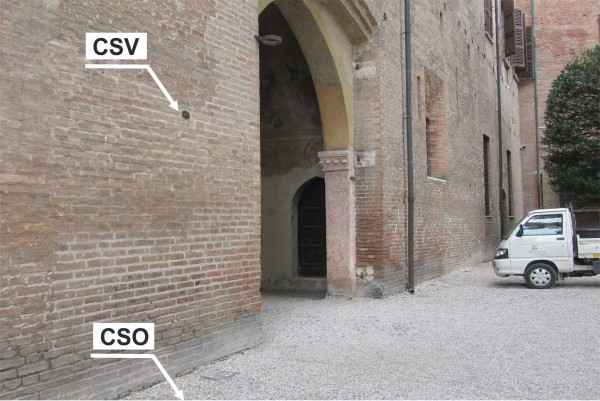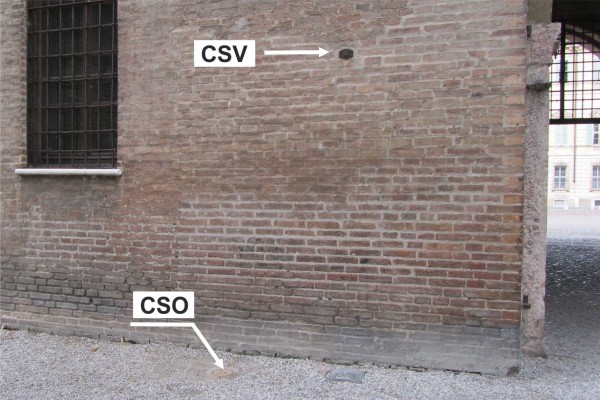 [{"simbolo_contrassegno":"P2","materializzazione":"(CSO) – Chiusino di II categoria posto alla base della facciata del retro del Palazzo Ducale prospicente il giardino a circa m.2,30 dallo spigolo destro della porta d'ingresso."},{"simbolo_contrassegno":"V2","materializzazione":"(CSV) – Piastrina a barilotto infissa sulla facciata posta sul retro del Palazzo Ducale prospicente il giardino in corrispondenza del CSO."}]