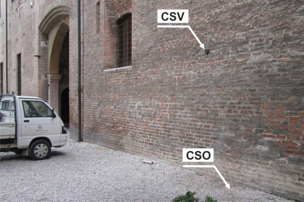 [{"simbolo_contrassegno":"P2","materializzazione":"(CSO) – Chiusino di II categoria posto alla base della facciata del retro del Palazzo Ducale prospicente il giardino a circa m.8,10 dallo spigolo sinistro della porta d'ingresso."},{"simbolo_contrassegno":"V1","materializzazione":"(CSV) – Mensola infissa sulla facciata posta sul retro del Palazzo Ducale prospicente il giardino in corrispondenza del CSO."}]