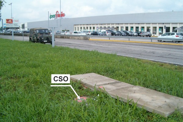 [{"simbolo_contrassegno":"B4","materializzazione":"(CSO) – Centrino Universale Inox infisso sulla sommit\u00e0 del cordolo in cemento di un tombino posto a destra della strada, in direzione di Verona, davanti ad un Centro Commerciale."}]