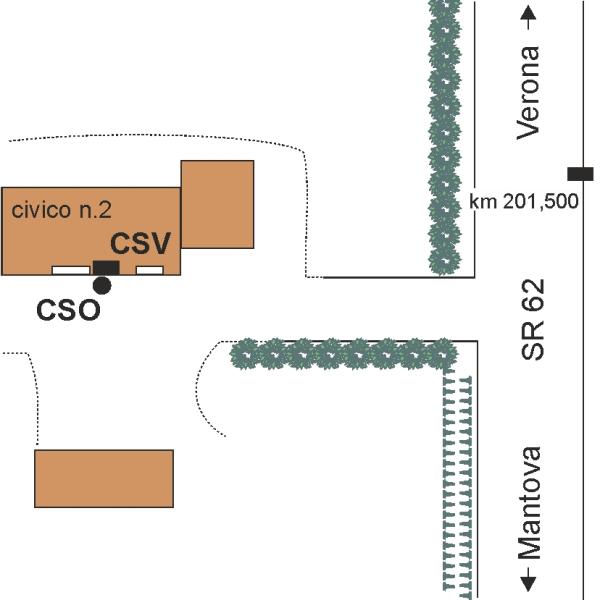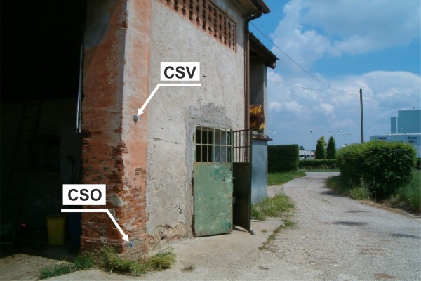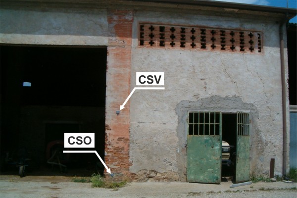 [{"simbolo_contrassegno":"B1","materializzazione":"(CSO) – Bullone infisso nel pilastro di destra dell'ingresso ad un deposito di macchinari agricoli."},{"simbolo_contrassegno":"V1","materializzazione":"(CSV) – Mensola IGM infissa nel medesimo pilastro, in corrispondenza del CSO."}]