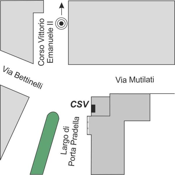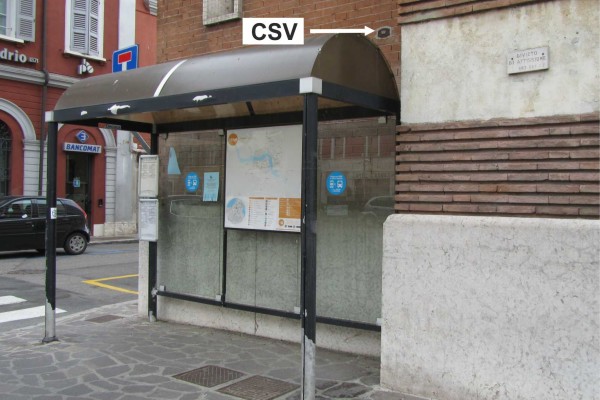 [{"simbolo_contrassegno":"V2","materializzazione":"(CSV) – Piastrina a barilotto infissa sulla facciata della Torre, angolo destro, prospicente via Largo di Porta Pradella e dietro la pensilina della fermata degli autobus."}]