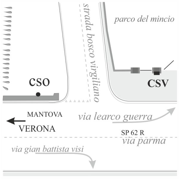 | Contrassegni | [{"simbolo_contrassegno":"B1","materializzazione":"(CSO) – Bullone stabilizzato nel cordolo del ponte e in angolo tra strada bosco virgiliano e via parma."},{"simbolo_contrassegno":"V1","materializzazione":"(CSV) – Mensola stabilizzata nel secondo montante di sinistra dell' accesso al parco del mincio."}] |