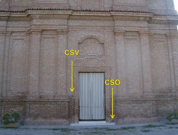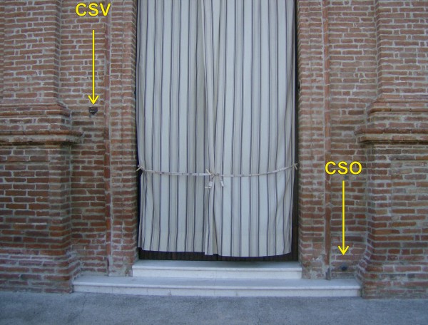 | Contrassegni | [{"simbolo_contrassegno":"B1","materializzazione":"(CSO) – Bullone infisso nella risega a destra della porta di ingresso."},{"simbolo_contrassegno":"V1","materializzazione":"(CSV) – Mensola nella risega a sinistra della porta di ingresso."}] |