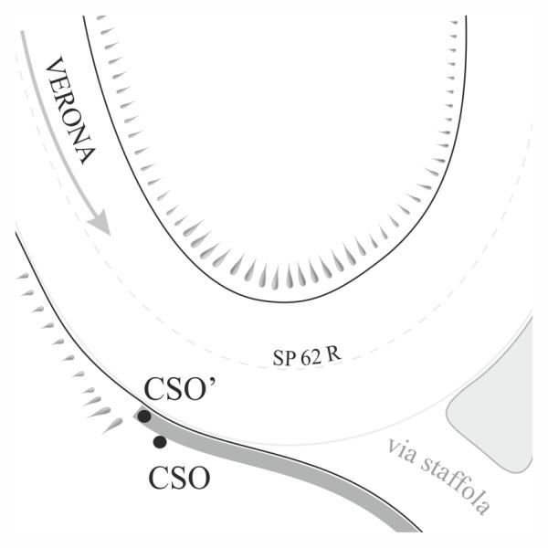 [{"simbolo_contrassegno":"B1","materializzazione":"(CSO) – Bullone stabilizzato nel muro di scarpa al bivio per via staffola."},{"simbolo_contrassegno":"B2","materializzazione":"(CSO) – Chiodo anonimo stabilizzato sul muro di scarpa in via staffola."}]