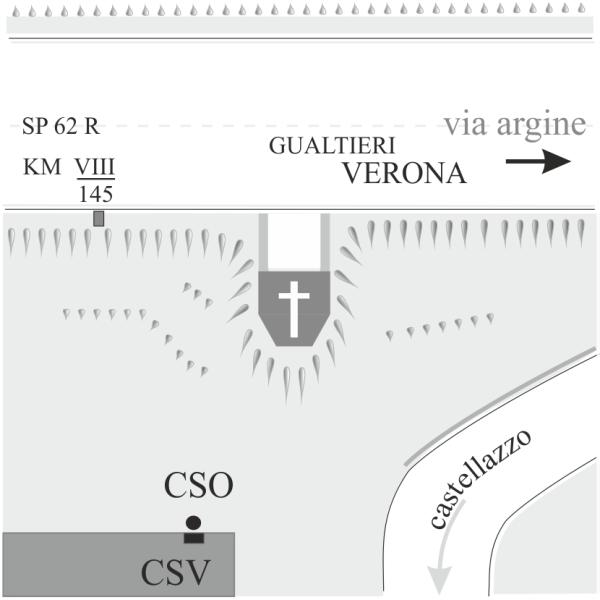 | Contrassegni | [{"simbolo_contrassegno":"P1","materializzazione":"(CSO) – Chiusino in ghisa stabilizzato alla base della facciata prospiciente la statale e prossimo allo spigolo di sinistra."}] |