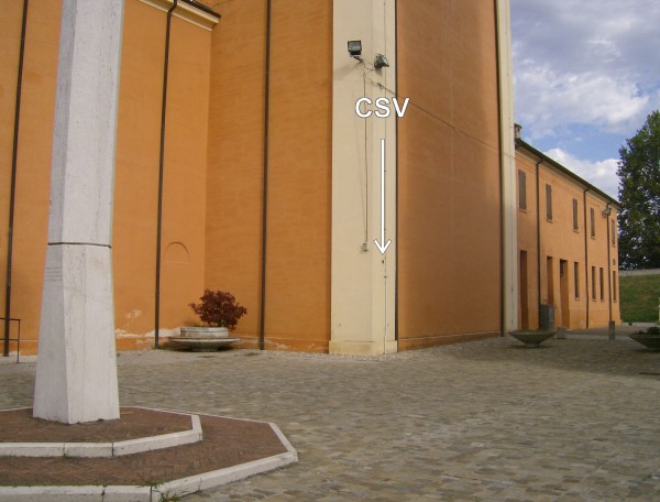| Contrassegni | [{"simbolo_contrassegno":"P2","materializzazione":"(CSO) – Chiusini in ghisa alla base della torre, a destyra della porta di accesso."},{"simbolo_contrassegno":"V1","materializzazione":"(CSV) – Mensola sul fianco sinistro della chiesa, presso lo spigolo sinistro."},{"simbolo_contrassegno":"P2","materializzazione":"CSO) – Chiusini in ghisa alla base della torre, a destyra della porta di accesso."}] |