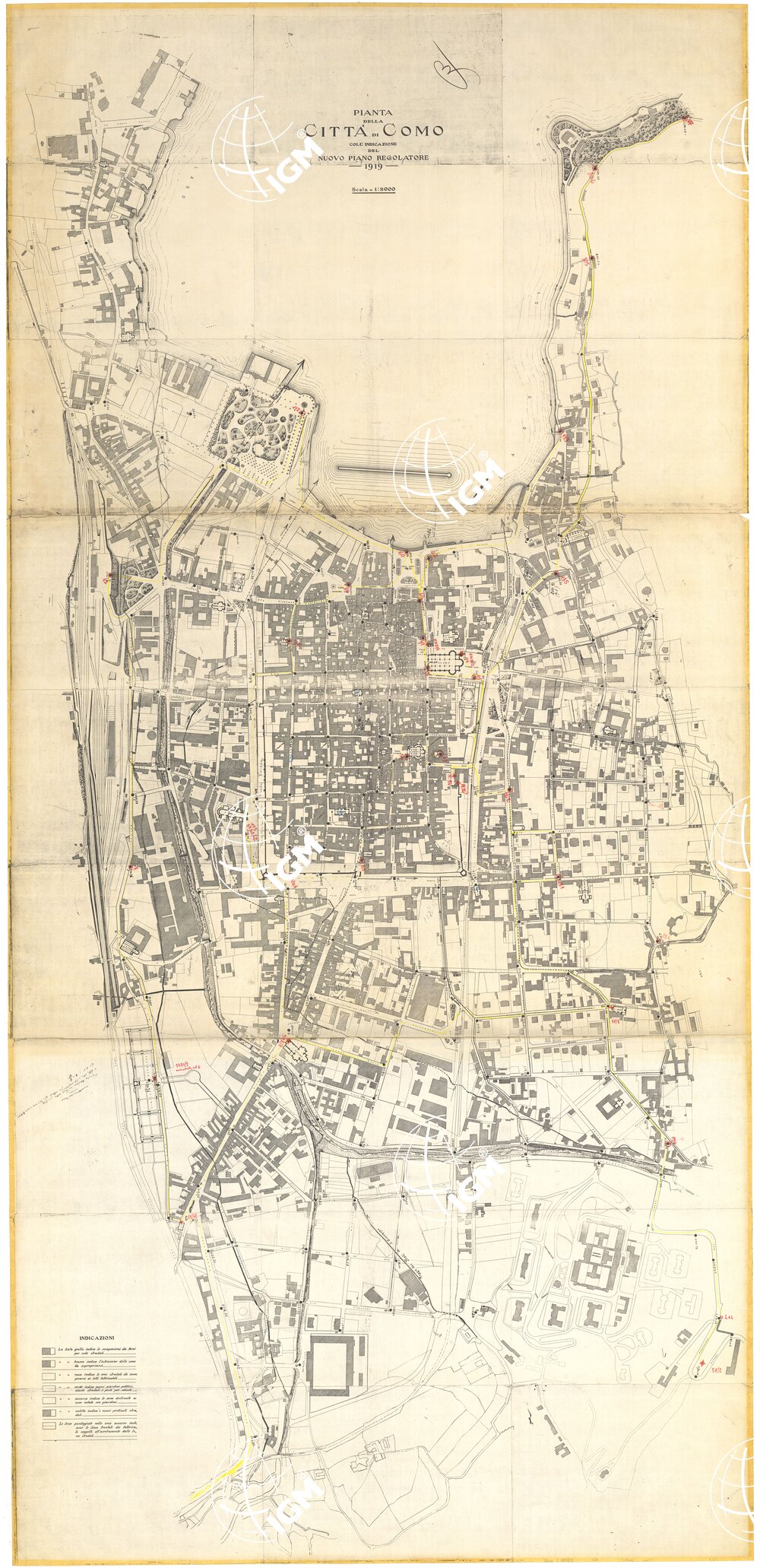 PIANTA DELLA CITTA' DI COMO COLL' INDICAZIONE DEL NUOVO PIANO REGOLATORE
