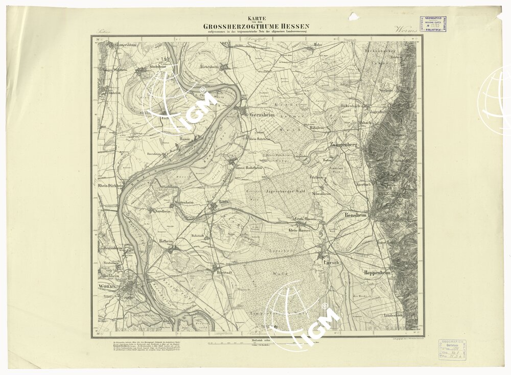 UEBERSICHT DER TOPOGRAPHISCHEN KARTE VON DEM GROSSHERZOGTHUME HESSEN – FOGLIO 25 WORMS