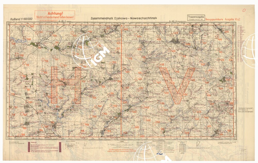 RUSSIA – RUSSISCHE KARTE (RIPRODUZIONE TEDESCA DELLA CARTA ORIGINALE DELLO S.M. DELL’ESERCITO ROSSO) Foglio L-37-7 Diakowo, Foglio L-37-8 Nowoschachtinsk
