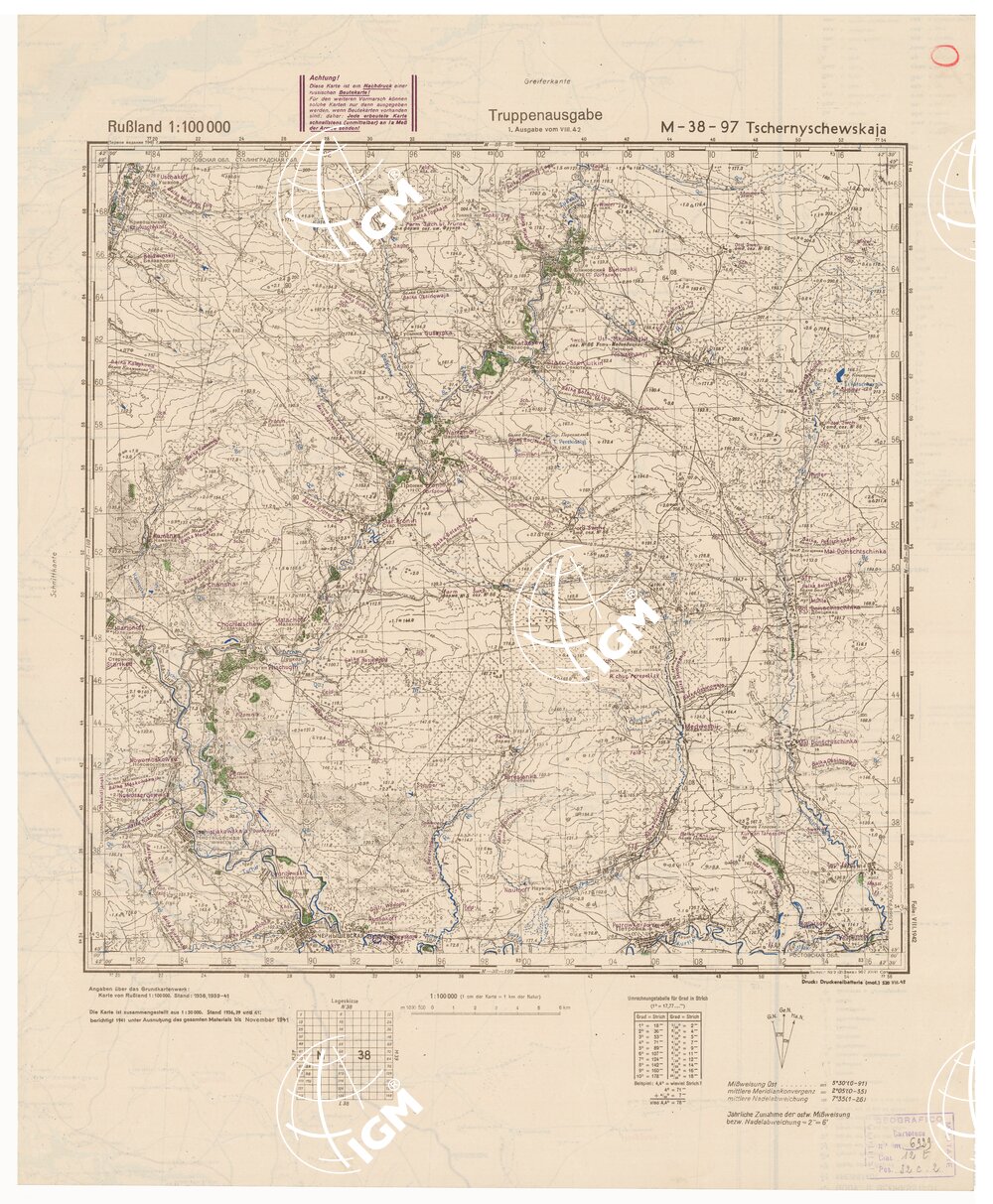 RUSSIA – RUSSISCHE KARTE (RIPRODUZIONE TEDESCA DELLA CARTA ORIGINALE DELLO S.M. DELL’ESERCITO ROSSO) Foglio M-38-97 Tschernyschewskaja