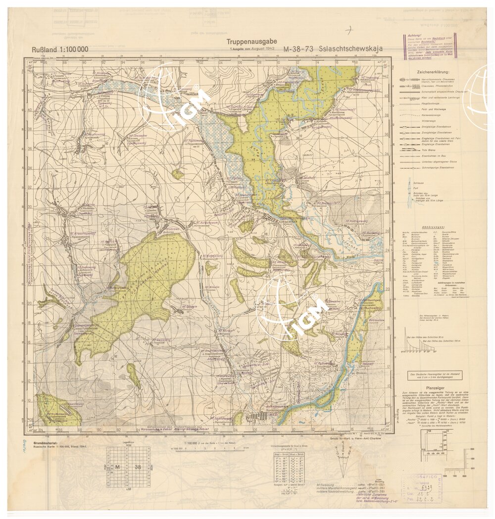 RUSSIA – RUSSISCHE KARTE (RIPRODUZIONE TEDESCA DELLA CARTA ORIGINALE DELLO S.M. DELL’ESERCITO ROSSO) Foglio M-38-73 Sslaschtschewskaja