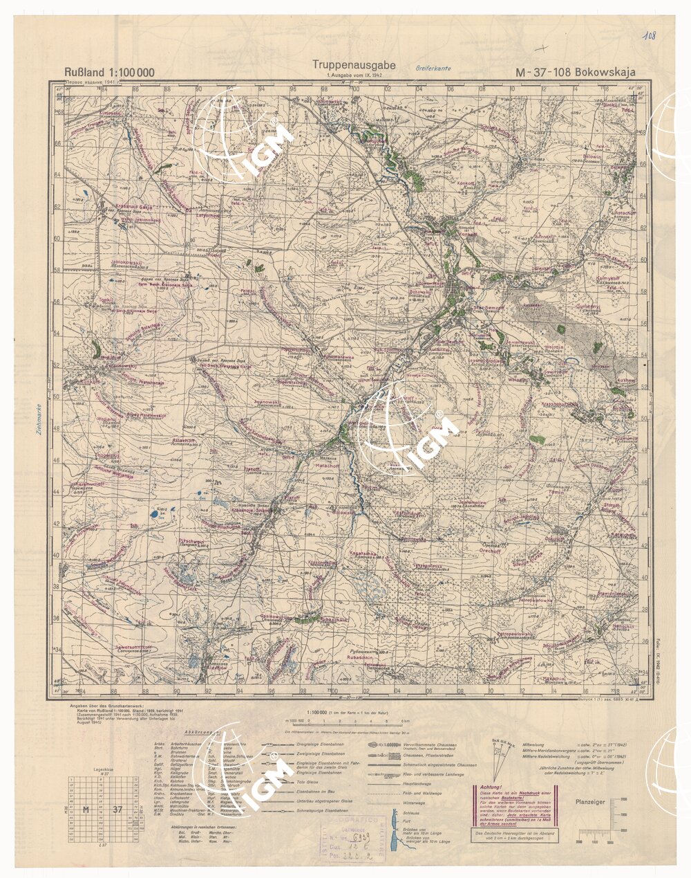 RUSSIA – RUSSISCHE KARTE (RIPRODUZIONE TEDESCA DELLA CARTA ORIGINALE DELLO S.M. DELL’ESERCITO ROSSO) Foglio M-37-108 Bokowskaja