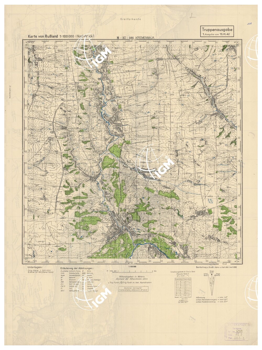 RUSSIA – RUSSISCHE KARTE (RIPRODUZIONE TEDESCA DELLA CARTA ORIGINALE DELLO S.M. DELL’ESERCITO ROSSO) Foglio M-37-101 Kremennaja