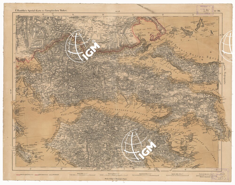 Fogli 20 su tela Tipo di stampa: policroma, rappresentazione orografica a tratteggio.