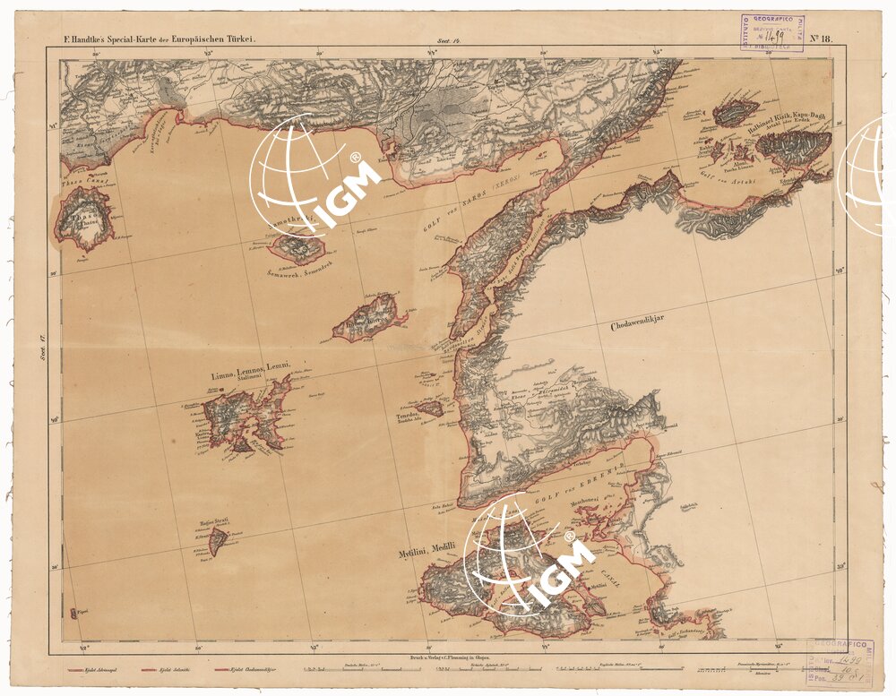 Fogli 20 su tela Tipo di stampa: policroma, rappresentazione orografica a tratteggio.