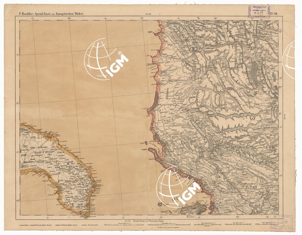 Fogli 20 su tela Tipo di stampa: policroma, rappresentazione orografica a tratteggio.