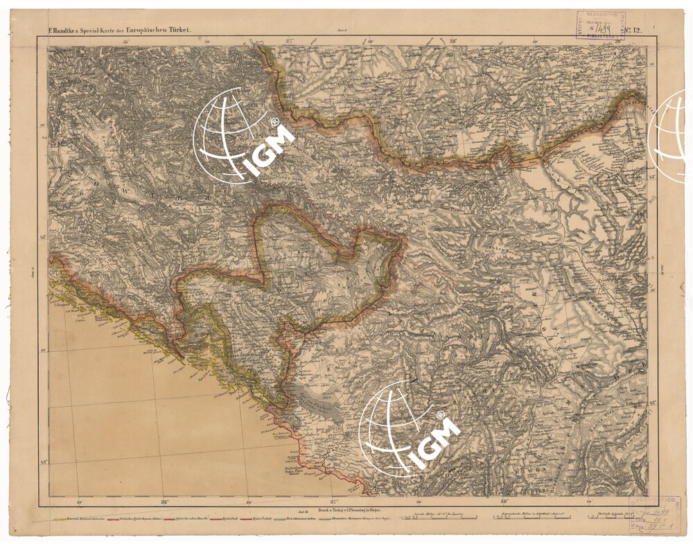 Fogli 20 su tela Tipo di stampa: policroma, rappresentazione orografica a tratteggio.
